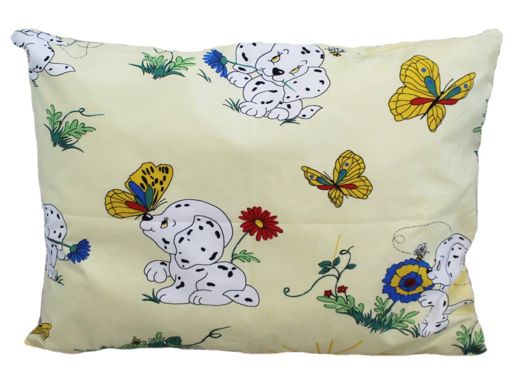 Príjemné detské obliečky vhodné do škôlky aj na doma. S motívom hravého šteniatka, ktorého detsky nevinná kukadla a šibalský úsmev privedú k dobrej nálade skutočne každého, dieťatko i dospelého. Veselá a hravá povaha malého psíka, slniečko, motýle a kvety doslova hrejú na duši, kvalitné bavlnené obliečky potom aj na tele. Veľmi príjemný materiál, odolné a poctivé spracovanie spolu s krásnym detským motívom predurčujú toto obliečky k tým veľmi obľúbeným.